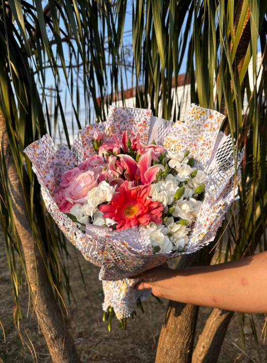 Um buquê com lírios e cravos traz uma combinação clássica, delicada e cheia de significado — o lírio representa pureza e o cravo simboliza amor e admiração